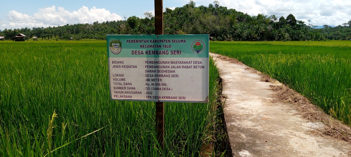 Dikonfirmasi tim Globaltoday tanggal (26/09/2022) terkait pembangunan rabat beton, Kepala Desa Kembang Seri, mengatakan dalam pelaksanaan pembangunan jalan rabat beton di Desa Kembang Seri memperhatikan kualitas sesuai yang ditetapkan Pemerintah Pusat.