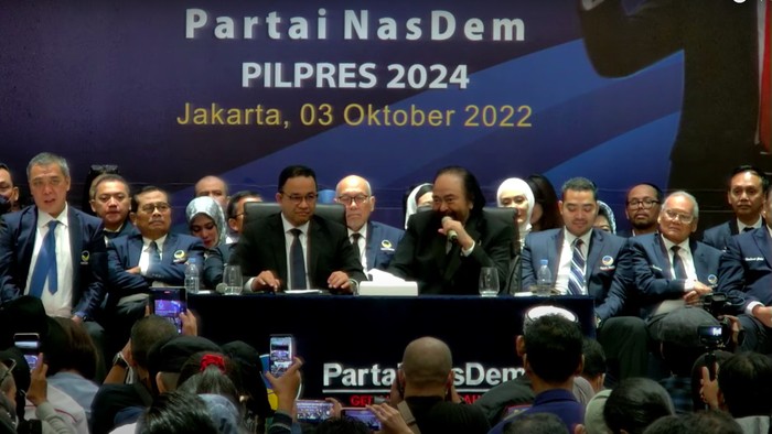 Paloh mengatakan NasDem resmi akan mengusung Anies Baswedan sebagai calon presiden di Pemilu 2024. Gubernur DKI Jakarta Anies Baswedan hadir dalam deklarasi capres NasDem.