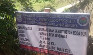 Kepala desa Sendawar Sekenar dalam sambutan pembukaan mengatakan, dalam pelaksanaan kegiatan fisik tahap 1 tahun anggaran 2023 ini, desa Sendawar akan membangun jembatan dengan volume 7 X 2 meter yang berlokasi di Dusun 3 dengan total biaya Rp 48.450.800.
