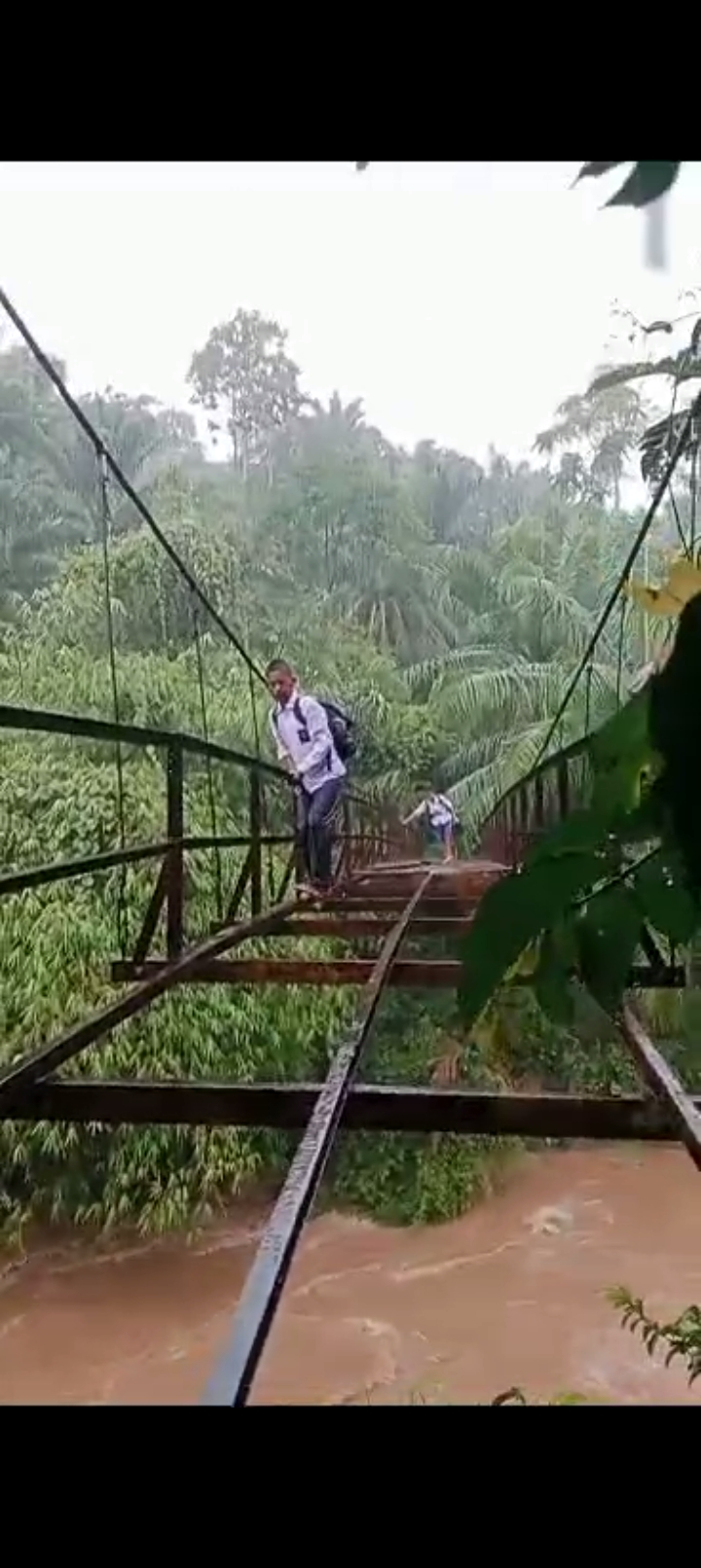 Salah seorang warga bernama Tomi Agusten menjelaskan, para pelajar tersebut nekad mempertaruhkan nyawa mereka untuk menyeberangi jembatan gantung dikarenakan itu merupakan akses tercepat mereka menuju kesekolah.