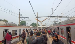 Jakarta, Globaltoday.id- Akibat insiden sebuah truk yang menabrak tiang Listrik Aliran Atas (LAA) didekat SMA Negeri 86, Jalan Bintaro Permai, Pesanggrahan, Jakarta Selatan penumpang kereta commuter line tertahan dan terlantar serta banyak penumpang yang menunggu baik didalam gerbong maupun turun dari rangkaian gerbong kereta.