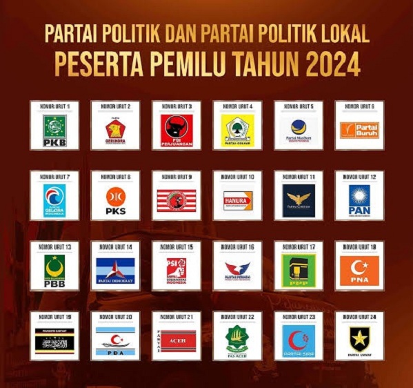 Partai Gelombang Rakyat (Gelora) 1 orang, Partai Keadilan Sejahtera (PKS) 9 orang, Partai Hati Nurani Rakyat (Hanura) 5 orang, Partai Amanat Nasional (PAN) 7 orang, Partai Bulan Bintang (PBB) 8 orang, Partai Demokrat 7 orang, Perindo 5 orang, Pertai Persatuan Pembangunan (PPP) 5 orang dan Partai Umat 1 orang.