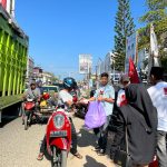 Lhokseumawe, Globaltoday.id -Milenial Projo Lhokseumawe melakukan aksi solidaritas Jumat Berbagi dengan Tukang Becak dan pengguna jalan di Simpang Selat Malaka Cunda Kota Lhokseumawe pada Jumat 2 Februari 2024.