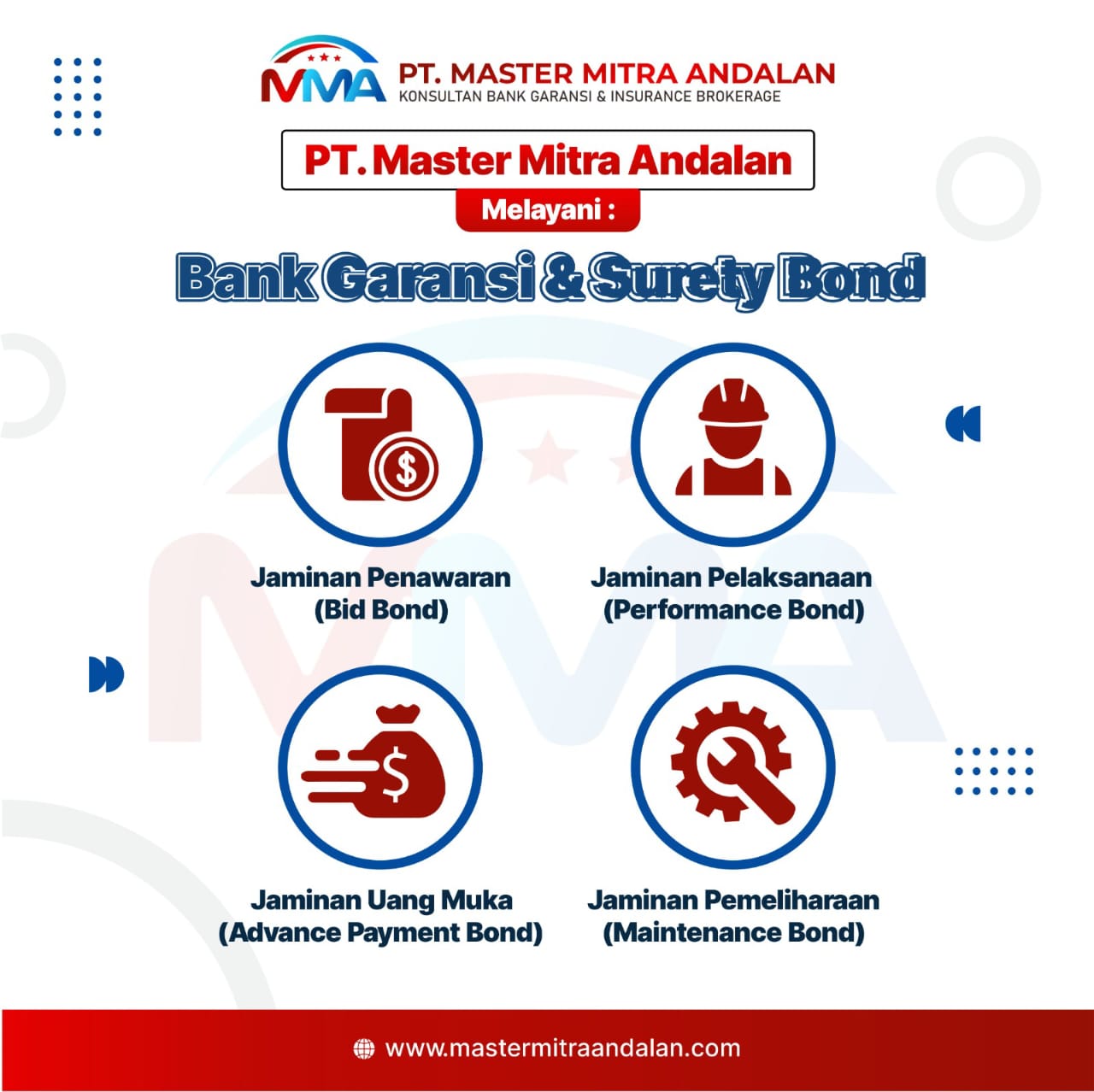 - Bank Garansi Uang Muka ( Advance Payment Bond ): Menjamin pembayaran sejumlah uang muka ( down payment ) setelah memenangkan proyek sebagaimana yang tercantum dalam perjanjian kontrak.