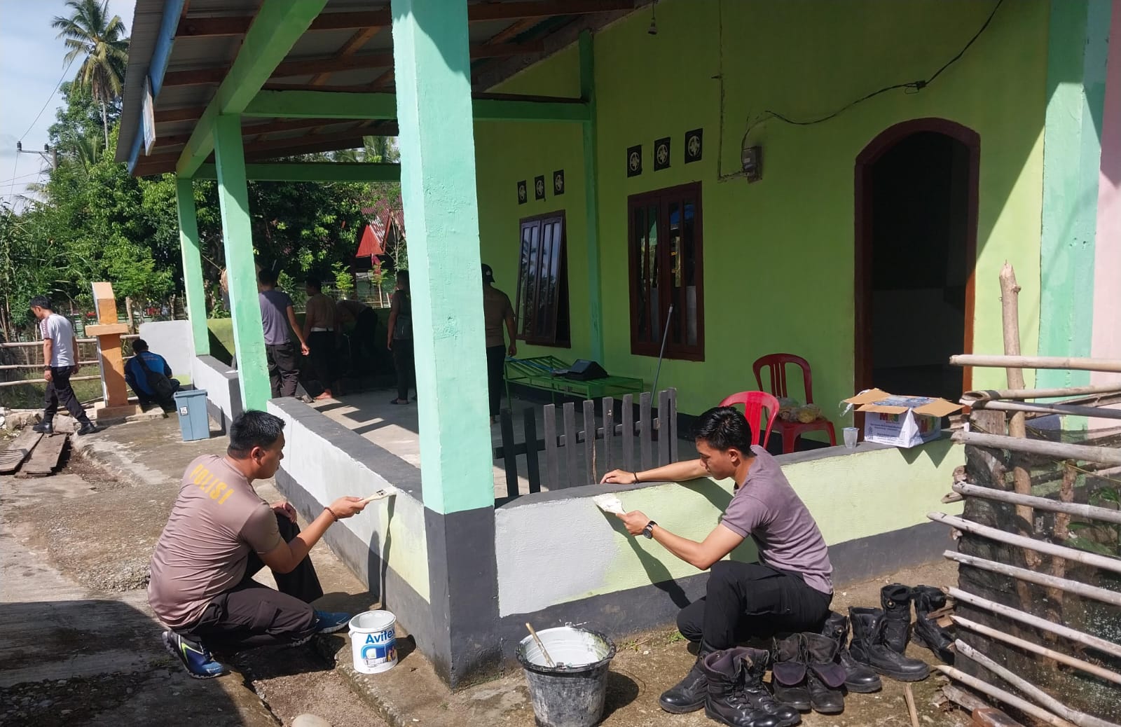 Kapolsek Pagulu Iptu. Hengki Hermansyah, SH beserta anggota dalam menyambut hari bhayangkara. hari ini gotong royong bersihkan Masjid Al-Taqwa bersama Pemerintah desa Lawang Agung. dimana selain membersihkan ruangan dan halaman juga mengecat tembok dan dinding Masjid tersebut.