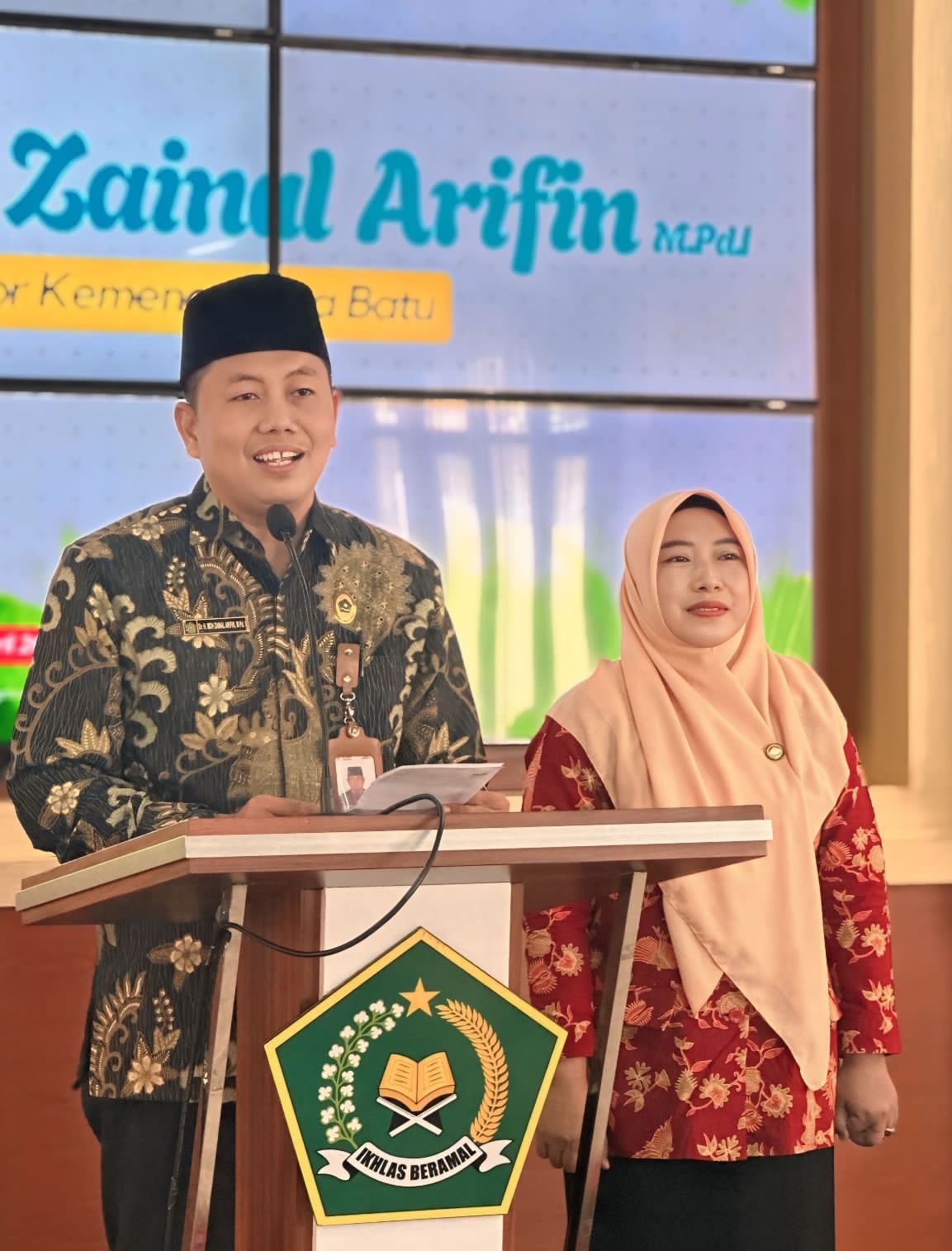 Mengawali perkenalannya Dr. H. Moh. Zainal Arifin. M.Pi menceritakan pengalamannya sebelum menjadi Kepala Kemenag Kota Batu yakni sebagai kasi Bimas dan Plt. Kasubag TU di Bojonegoro.”Alhamdulillah banyak capaian prestasi saat kami bersama Kakemenag Bojonegoro. Kami membawahi 28 Kecamatan yang letak geografisnya sangat heterogen.”