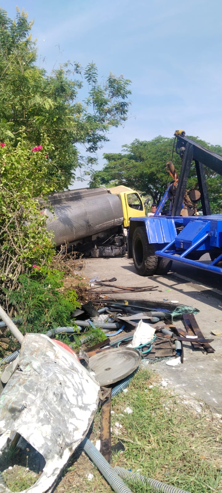 Globaltoday.id.Bojonegoro, 30 April 2025.Tabrakan melibatkan truk tangki bermuatan air dan sebuah minibus xenia terjadi di timur pintu masuk lapangan banyu urip (EXXON MOBIL) menyebabkan jalan menuju Lapangan Banyuurip (Exxon Mobil) macet.