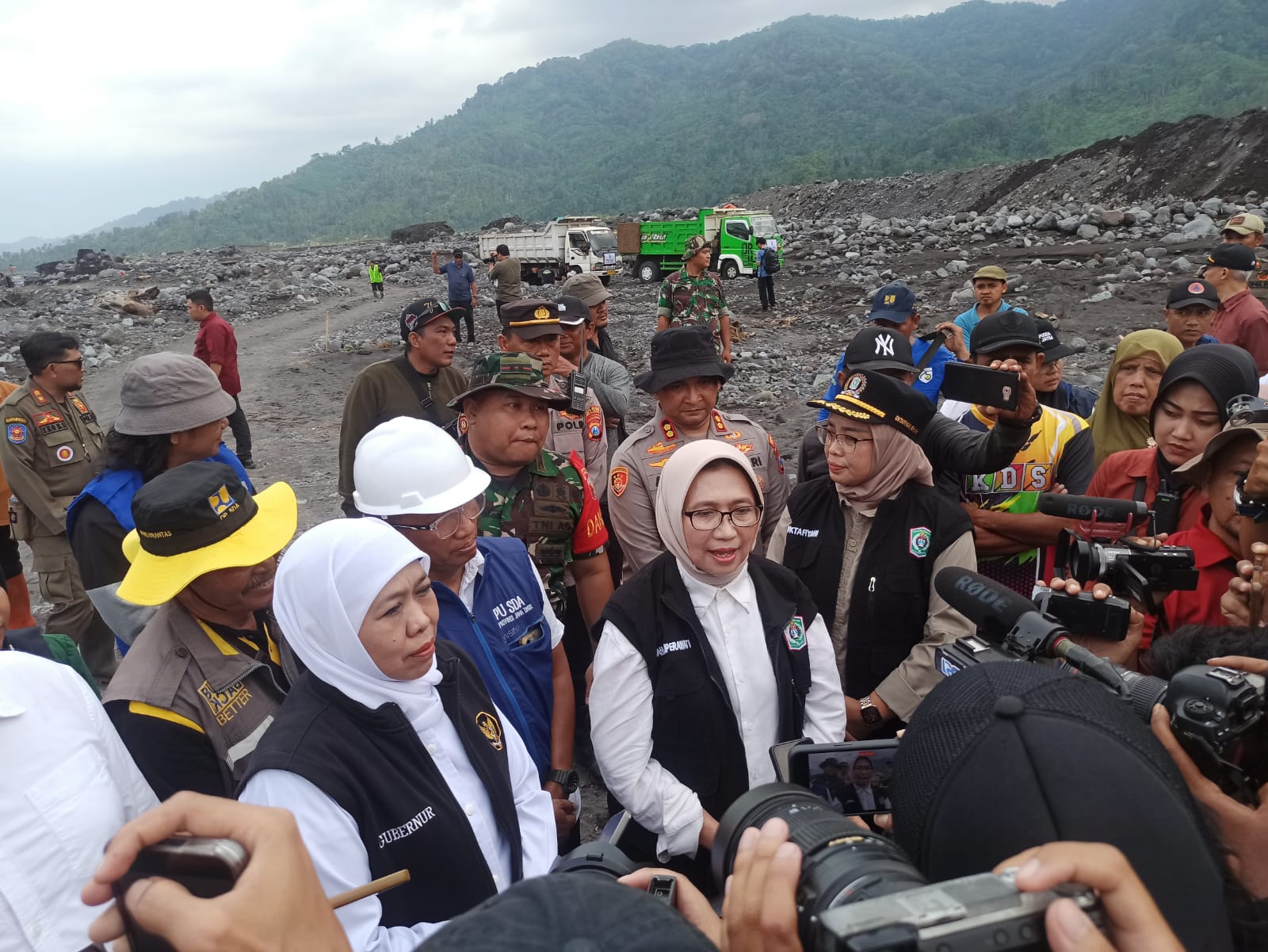 Gubernur Khofifah tiba di lokasi sekitar pukul 13.30 WIB, setelah menghadiri pelantikan pengurus Himpunan Kerukunan Tani Indonesia (HKTI) Lumajang di Pendopo Kabupaten. Ia didampingi oleh Bupati Lumajang, jajaran BPBD, Dishub , Satpol PP serta tim dari PU-PR Kabupaten.