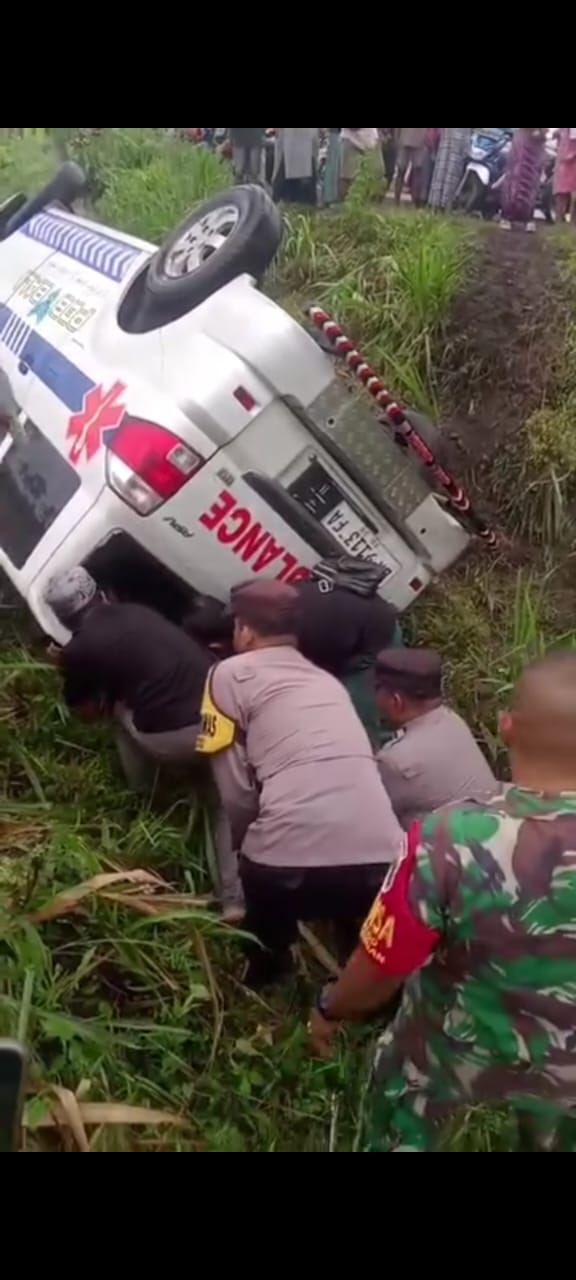 Ambulans Pembawa Jenazah dari Bali ke Malang Alami Kecelakaan di Jalur Selatan Pasirian, Pecah Ban Masuk Sawah