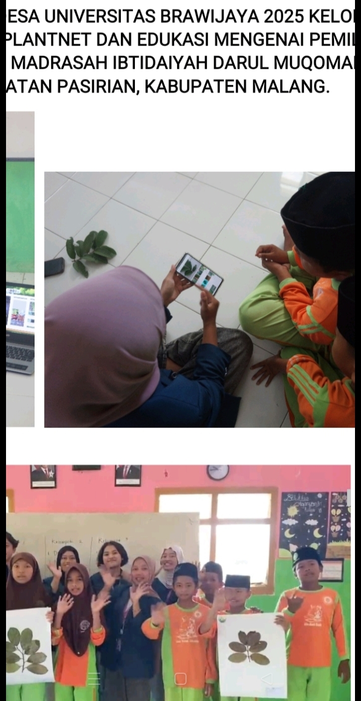 Mahasiswa Membangun Desa UB Kenalkan Aplikasi PlantNet kepada Siswa Kelas 6 MI Darul Muqomah