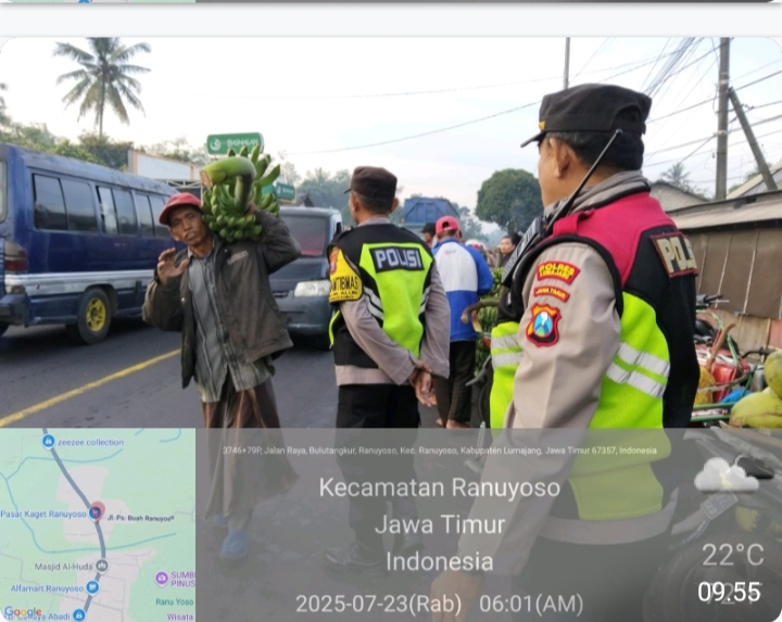 Globaltoday.id, Lumajang– Guna menjaga kelancaran arus lalu lintas dan menciptakan ketertiban di kawasan pasar, jajaran Polsek Ranuyoso melaksanakan kegiatan pengaturan lalu lintas di depan Pasar Buah, Kecamatan Ranuyoso, Kabupaten Lumajang, Rabu (23/7/2025) pagi.