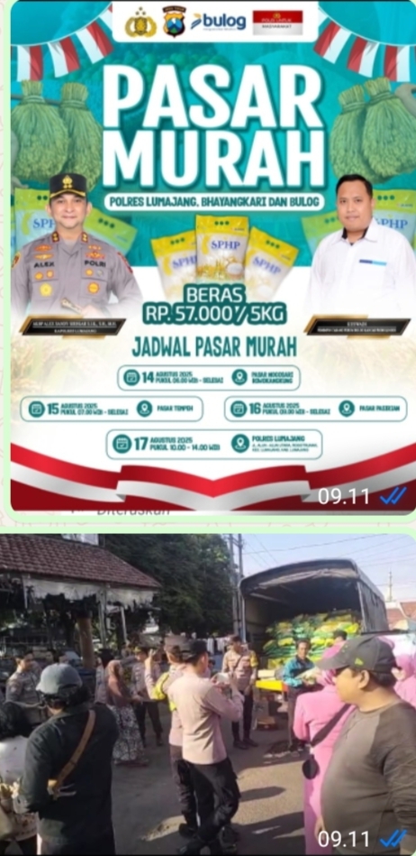 Kapolres Lumajang, AKBP Alex Sandy Sihotang SIK, SH, MH, menyampaikan bahwa kegiatan pasar murah ini merupakan wujud kepedulian Polri bersama Bulog dalam meringankan beban masyarakat di tengah tingginya kebutuhan pokok.