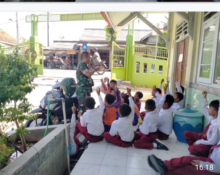 Tanamkan Disiplin dan Jiwa Nasionalisme, Babinsa Peltong Sambangi Siswa SDN Peltong