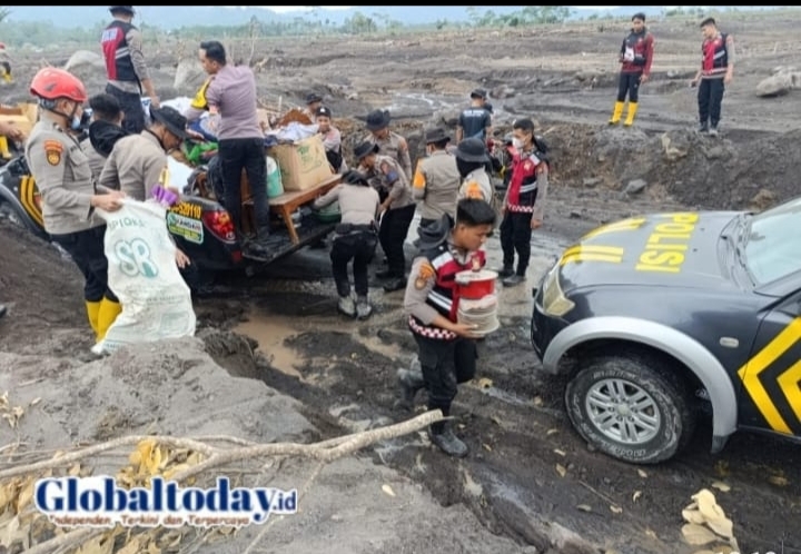 Globaltoday.id, Lumajang – Personel gabungan dari Polres Lumajang dan Brimob Polda Jawa Timur diterjunkan untuk membantu proses evakuasi barang-barang berharga milik warga terdampak erupsi Gunung Semeru di Dusun Sumbersari, Desa Supiturang, Kecamatan Pronojiwo, Kabupaten Lumajang, Minggu (23/11/2025).
