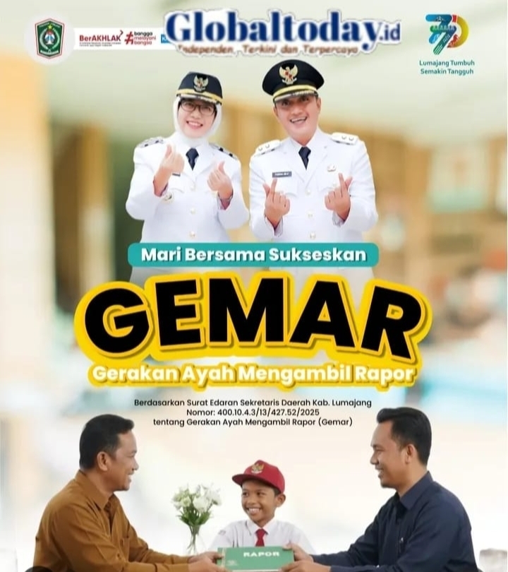 Globaltoday.id, Lumajang — Pemerintah Kabupaten Lumajang kembali menegaskan pentingnya keterlibatan ayah dalam pendidikan anak melalui peluncuran Gerakan Ayah Mengambil Rapor (GEMAR). Program ini menjadi bagian dari inisiatif Sekolah Bersama Ayah (SEBAYA) yang bertujuan memperkuat peran keluarga dalam mendukung tumbuh kembang anak.