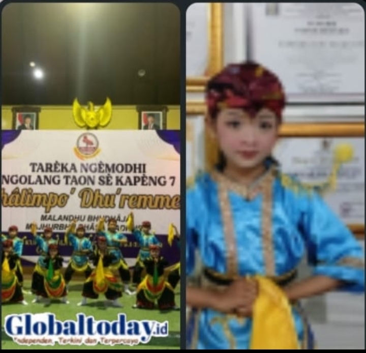 Globaltoday.id, PAMEKASAN – Penampilan Vilka Arkana Arsyka, siswi SDN Potoan Laok 1 Kecamatan Palengaan, berhasil memukau para tamu undangan dalam acara Tarèka Ngèmodhi Ngolang Taon Sè Kapèng 7 Ghâlimpo’ Dhu’remmek yang digelar di Pendopo Ronggo Sukowati, Pamekasan, Senin malam (29/12/2025).