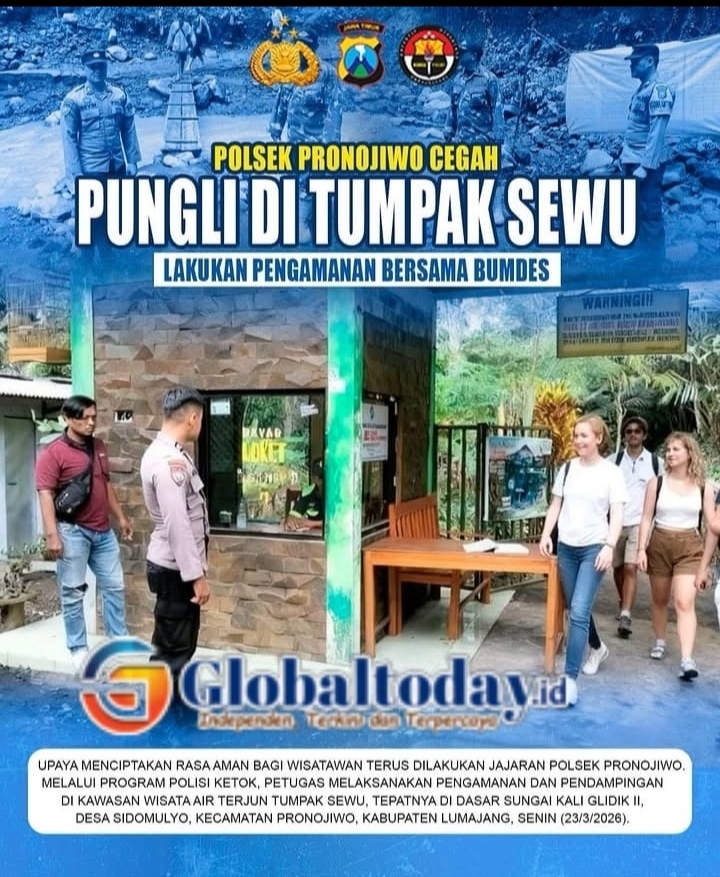 Globaltoday.id, Lumajang – Upaya menciptakan rasa aman dan nyaman bagi wisatawan terus dilakukan jajaran kepolisian. Kali ini, Polsek Pronojiwo bersama Badan Usaha Milik Desa (Bumdes) Sidomulyo melakukan pengamanan dan pendampingan di kawasan wisata Air Terjun Tumpak Sewu, Kabupaten Lumajang.