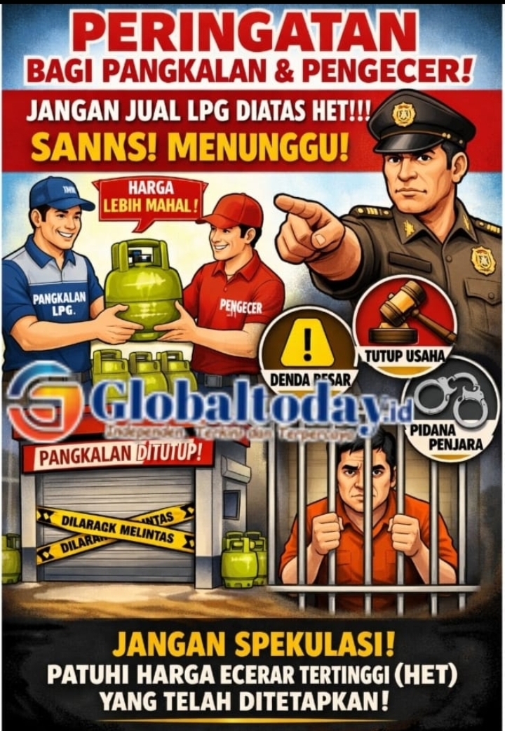 Globaltoday.id, Lumajang – Pemerintah bersama aparat penegak hukum memperingatkan para pengecer dan pelaku usaha agar tidak memperjualbelikan LPG bersubsidi 3 kilogram di atas Harga Eceran Tertinggi (HET). Pelanggaran terhadap aturan tersebut tidak hanya berujung pada sanksi administratif, tetapi juga dapat berujung pidana dengan ancaman penjara hingga tiga tahun serta denda maksimal Rp30 miliar.